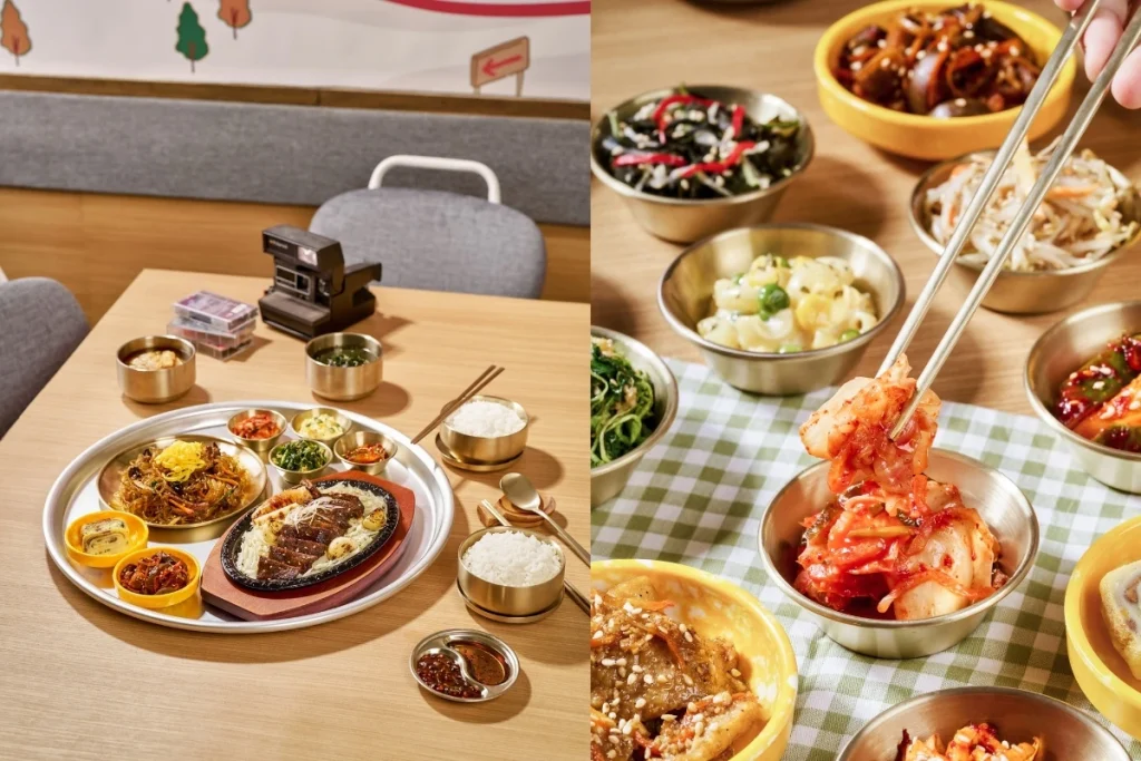 Tersedia juga berbagai side dish pilihan yang memperkaya rasa dan menjadikan pengalaman makan semakin autentik. Semua sajian dihidangkan di atas nampan besar untuk menghadirkan suasana bersantap yang imersif, seolah menikmati hidangan rumahan langsung di Korea Selatan.